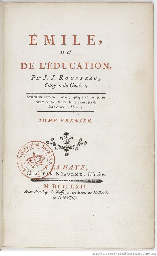 From J. J. Rousseau, Émile, ou de l'éducation, 4 vols. La Haye: Cez Jean Néaulme, Libraire, MDCCLXII.